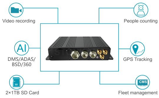 The STONKAM Intelligent 6-Channel AI MDVR Camera System supports 6-channel audio and video input and integrates multiple advanced AI algorithms including ADAS, DMS, BSD, APC, and 360° AVM. It enables intelligent driving assistance, driver status monitoring, blind spot detection, passenger flow statistics, and 360° panoramic surveillance. Equipped with powerful recording functions and real-time remote monitoring capabilities, it facilitates smarter and more comprehensive fleet management!